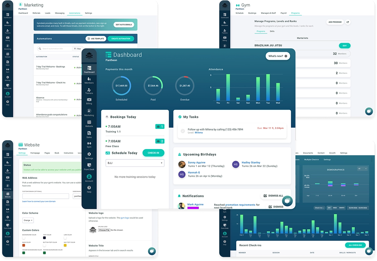 A clean interface you can learn in a day, built to fit any gym—BJJ, yoga, CrossFit, gymnastics. You don't need a training manual or an IT person. It just works.