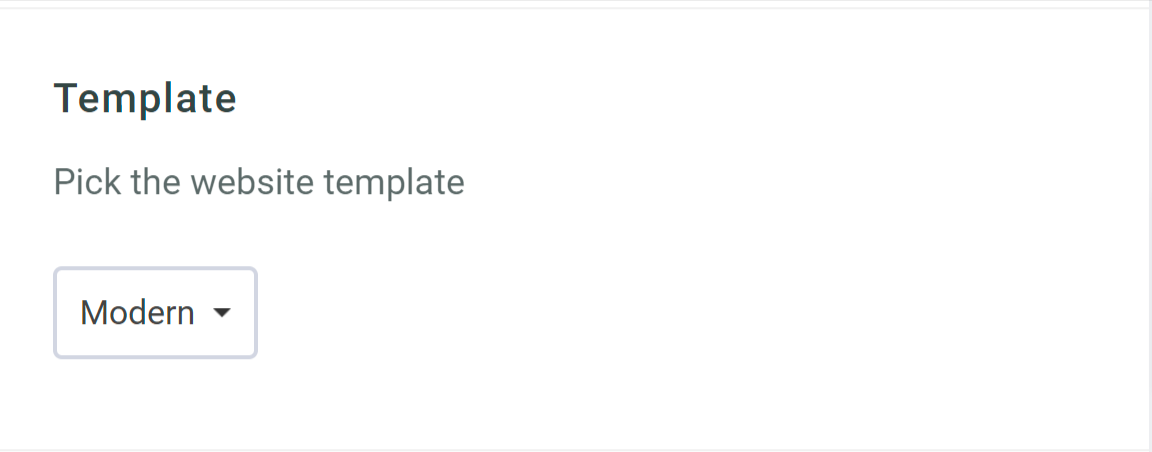 To showcase the different options available with the new website editor, and to give a strong starting point to those of you without a good direction of how you want the website to look like, weâve added a new template option we call the âmodernâ template. The new template can be selected in the website settings.