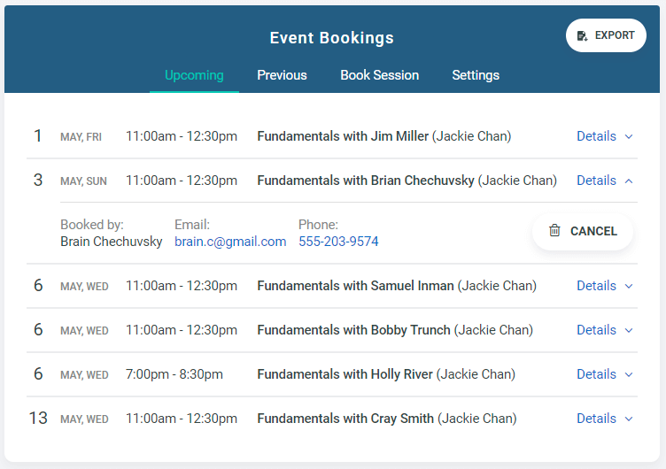 - Class scheduling: You can schedule and publish classes on your website or social media channels. Clients can then book their spots in advance, and businesses can track their attendance to understand class popularity and demand better. Â