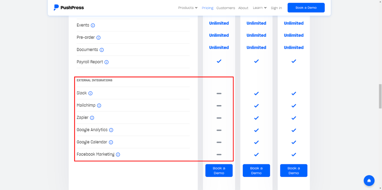 - All features are available in every plan: The features above that you have to pay extra for with PushPress? All of those features are available regardless of the plan you choose. This means you get access to sales and marketing automation, a CRM, and your branded appâall PushPressâ premium tools, from day one, for the same, low price!