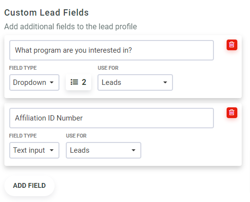 We've been building out the data you can store for leads - you can now add emergency contacts for a lead, such as their parents or family members, as well as any number of custom fields.