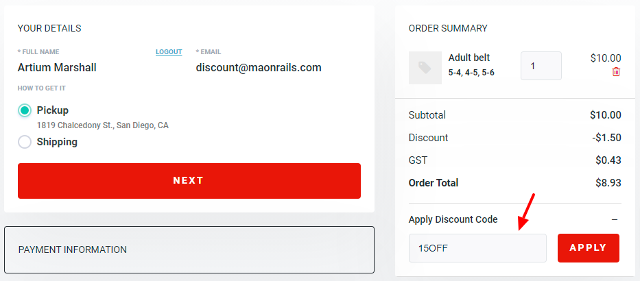 Once there are active discounts for the shop, the option to input a discount code will appear on the check out screen -