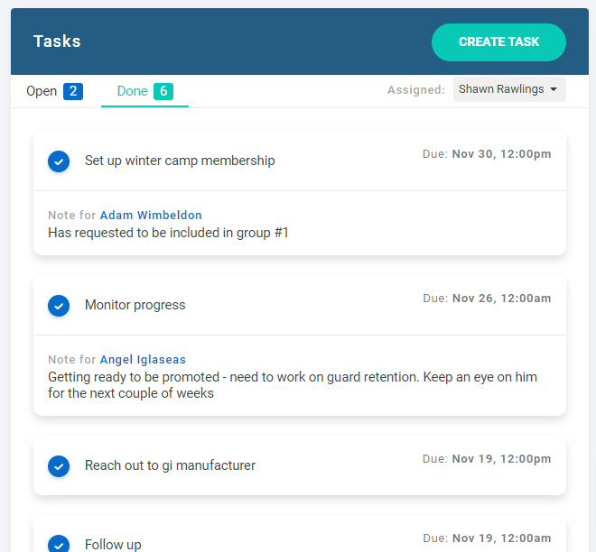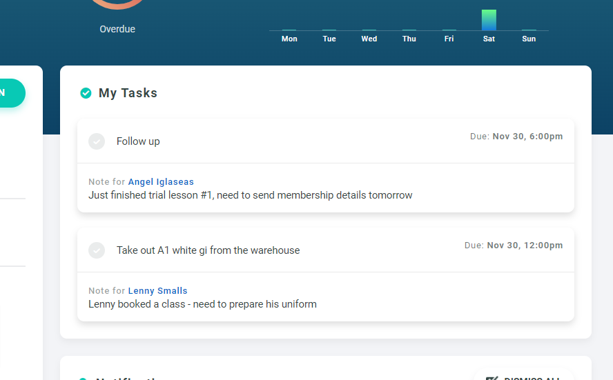 You and your staff can now manage a task list for day-to-day activities, such as following up with leads, setting up memberships and payments for members and more.