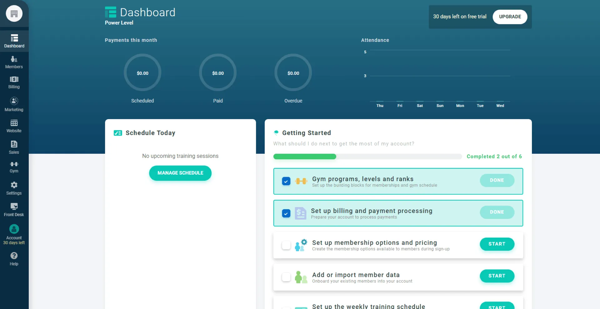 Gymdeskなら、収益、出席者数、成長予測に関する明確で読みやすいレポートを入手できます。スプレッドシートに頼ったり、不正確なデータに基づいて将来の傾向を推測したりするのはやめましょう。情報に基づいた意思決定を迅速に行い、学校を成長させましょう。