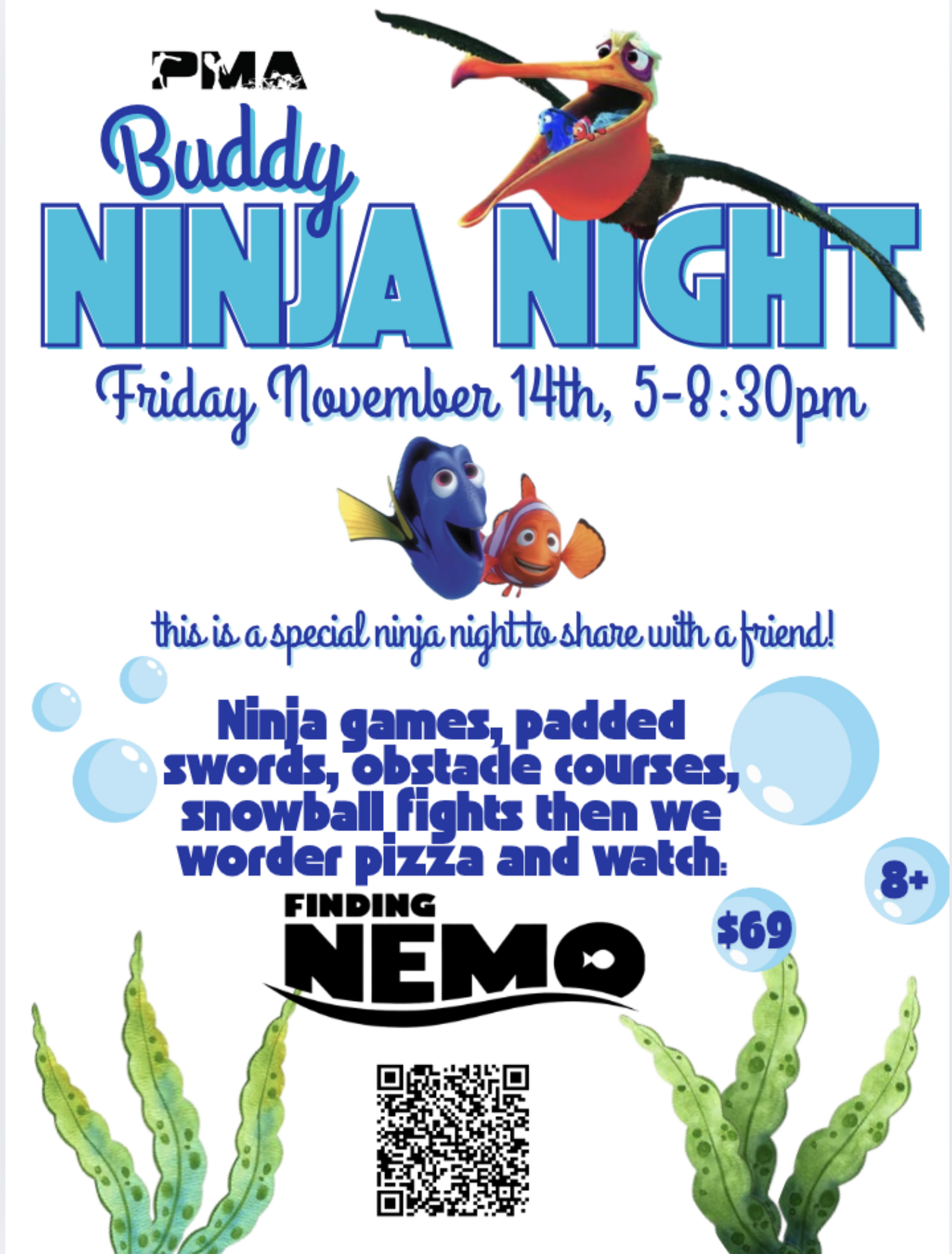 All of the usual fun: games, padded swords, snowballs and more plus pizza and Finding Nemo on the big screen!